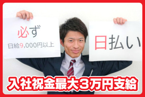 | 給与 | 日給9,000~12,000円 ★全額日払い!現金手渡しで稼げます!! |