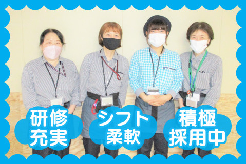 | 給与 | 時給1,100円~1,150円 土日祝勤務は時給50円UP! ・昇給あり ※試用期間なし |