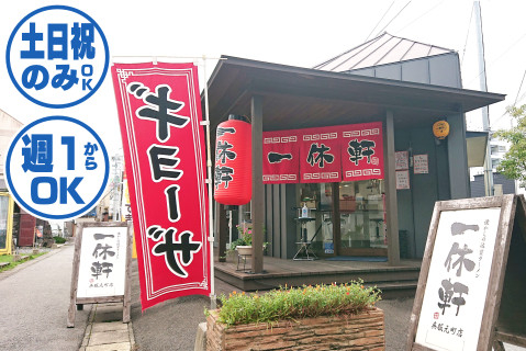 | 時間 | 土日祝のみの11:00〜14:30 日数・時間帯はお気軽にご相談下さい ※コアタイムのみ(11:00〜13:00) 勤務も大歓迎!! ※土・日・祝のうち1日のみの勤務もOK! |