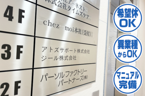 | 時間 | 9:30〜19:00で実働8h ※残業はありません ※シフトはお気軽にご相談下さい ※②1日3時間〜相談OK! |