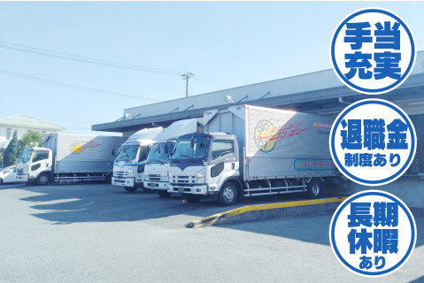 | 給与 | (10t地場) 月給330,000円以上 (10t長距離)月給442,000円以上 (4t地場)月給300,000円以上 ※コースにより異なる ※残業の場合は別途残業手当支給 |