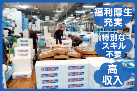 | 募集職種 | 鮮魚市場の仕分け・配送スタッフ |
