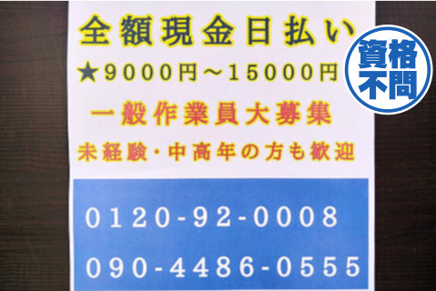 | 給与 | 日給9,000〜15,000円 (経験・能力による) |