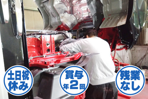 | 給与 | 日給10,000円〜13,500円+諸手当有 ※月収20数万〜30万円、 能力ある方は月収30万円以上可能! ※板金経験者、現場経験ある方、 資格者は給与面で優遇します! <収入例> ・入社2年目 年収約400万円(賞与含む) ・入社4年目 年収約500万円(賞与含む) ・入社6年目 年収約550万円(賞与含む) 年収600万円以上の方も活躍中! |